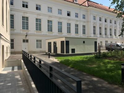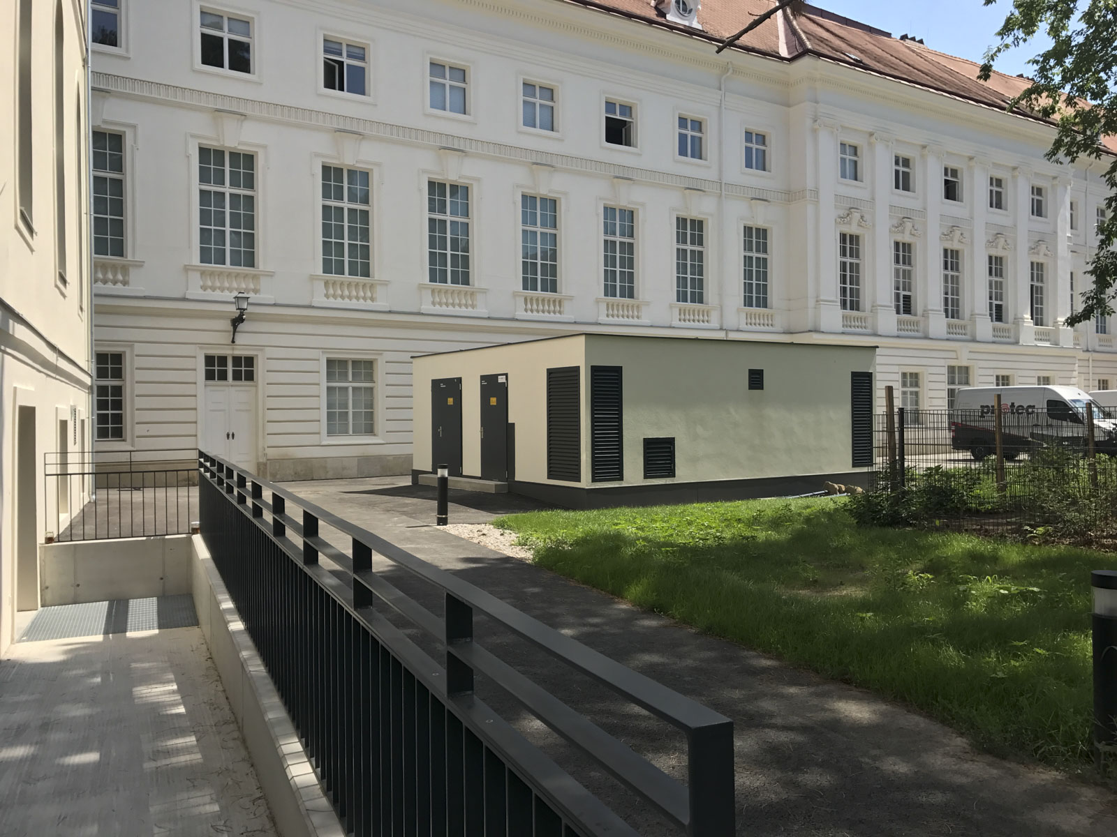Am Standort der Medizinischen Universität Wien, Währingerstraße 25a, 1090 Wien wurde für den Bauteil 1 ein Umbau mit folgendem Umfang umgesetzt: Herstellung eines (Ersatz-)Rechenzentrums, Büro- und Besprechungsräume sowie Technikzentralen und zugehörige Neben- und Kleinräumlichkeiten. Der Umbau der bestehenden Gebäudeinnenstruktur erstreckte sich vom Sockelgeschoss und 1.Untergeschoss über ein Erdgeschoss 1, Erdgeschoss 2 bis zum 1.Obergeschoss samt zugehörigem Dachboden. Das Erdgeschoß wurde aufgrund seiner hohen vorhanden lichten Innenhöhe zum Teil in 2 Geschosse unterteilt (EG.1 und EG.2).